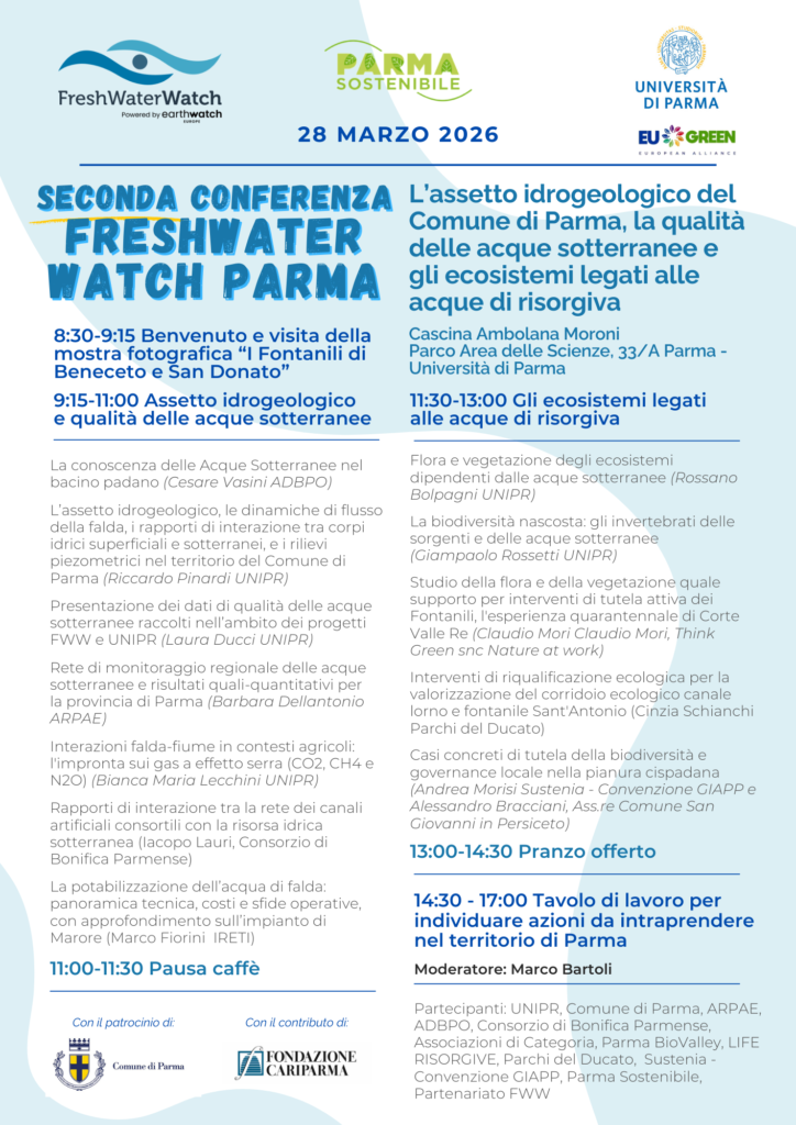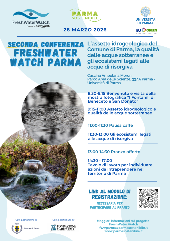 Sabato 28 marzo 2026 al Campus dell’ Università di Parma si tiene la seconda conferenza del progetto @Fresh Water Watch di Parma Sostenibile con il contributo di @Fondazione Cariparma, cui aderiscono molte associazioni, tra cui ADA odv – Associazione Donne Ambientaliste.