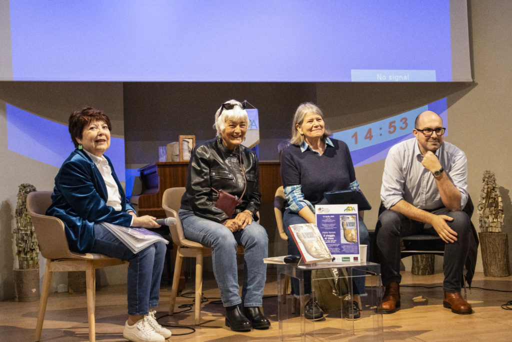 da sinistra Laura Dello Sbarba vicepresidente di ADA, Franca Zanichelli presidente di SPSN, Paola Peresin autrice di Il viaggio di Slavc e il biologo Simone Rotelli